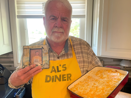 Andrew Bradie’s cheesy shepherd’s pie is humble comfort at its finest—born of quiet pandemic days, when time slowed down and the stove stayed warm. During COVID, newly retired and grounded by restrictions, Andrew began cooking large meals for his children, grandkids, and in-laws nearby. He made shepherd’s pie often, adapting and perfecting it over time, sometimes from memory, sometimes from dog-eared recipes lost along the way. Its cheesy, savoury layers became a family staple—and a way to connect when the world felt uncertain.