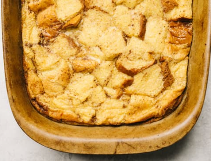 Turn bread slices over in baking dish. If adding fruit, scatter blueberries/strawberries over bread and sprinkle evenly with the crumble mixture.