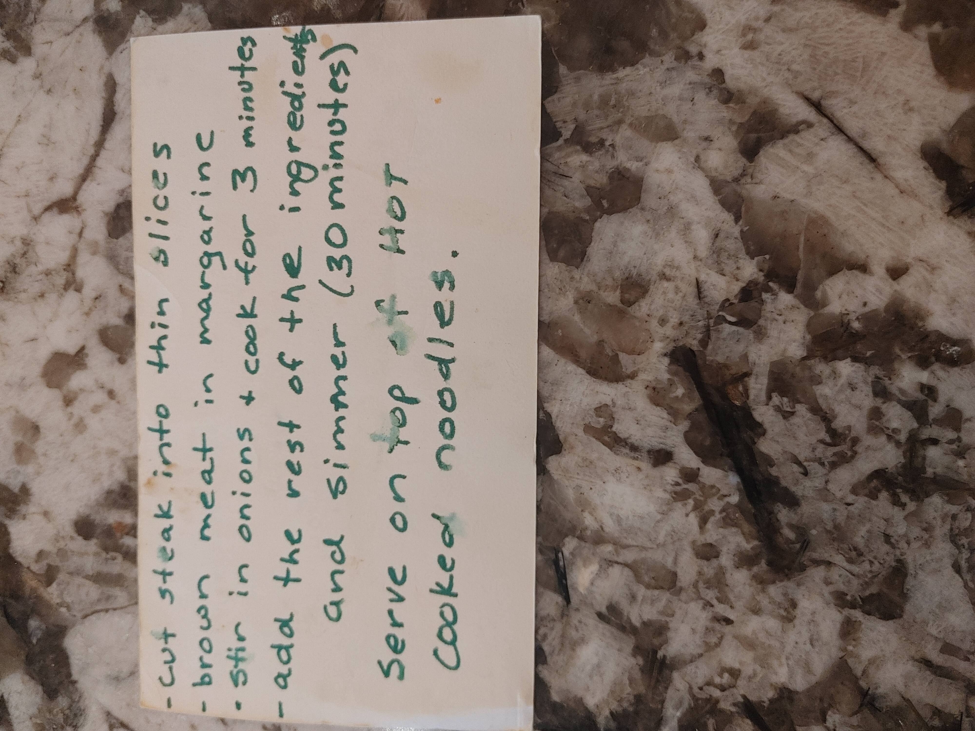 Easy recipe (cheating with canned soup).. can add a little Heinz 57 steak sauce to taste. Replace steak with left over roast for a quick meal.