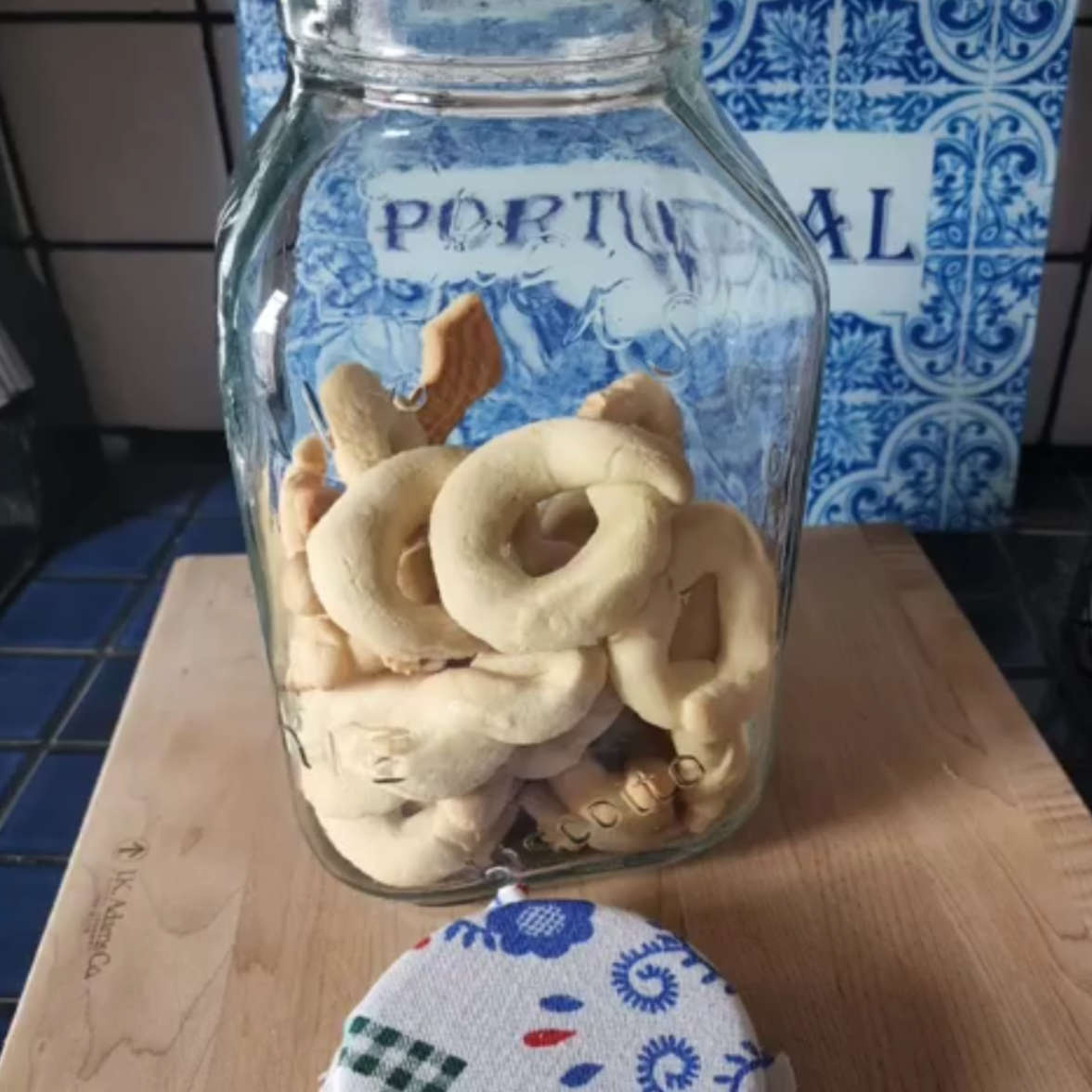 Biscoutos are a biscuit-like, dunking cookie. Buttery, not too sweet, and traditionally made in the shape of an O. All the mixing was done by hand. Which is a little more work, but I think it makes a difference in the end. These Biscoutos are still Shannel's favourite cookies. When we go on road trips she will ask if Vavo can pack a care package with these cookies.