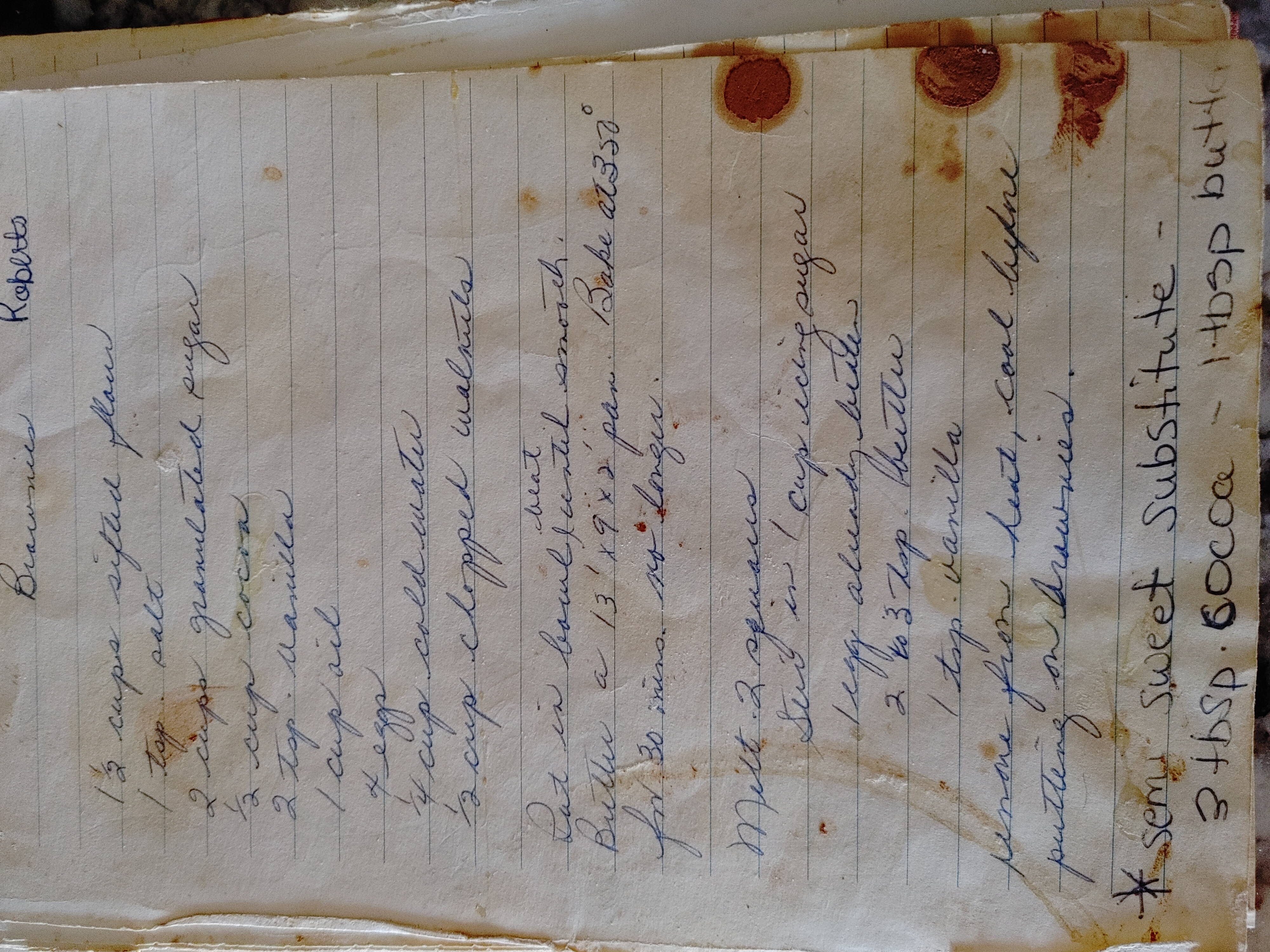 Jennifer Robertson's family recipe, you'll never need another brownie recipe again. See the well used recipe below..
