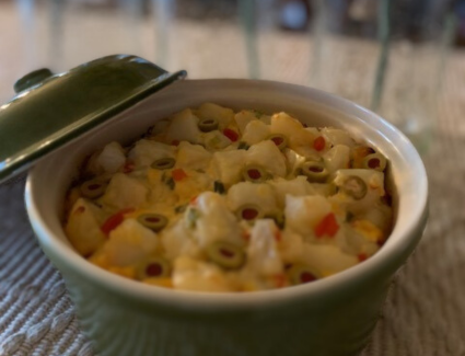 Gaye McGee humbly admits she’s not a chef by trade—but her Hot Cheese Potato Salad has become a star at every family gathering. This rich, creamy dish blends tender red potatoes with green olives, onions, and melty Velveeta cheese for a comforting, crowd-pleasing favourite.