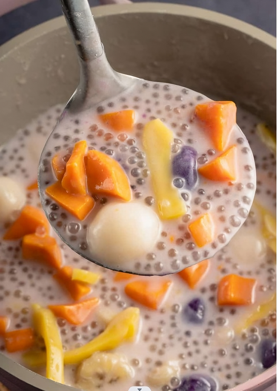 Bilo-bilo is a popular Filipino dessert that traces its origins to the country's rich cultural traditions and its love for sweet, comforting treats. Typically, bilo-bilo is made by cooking the rice dumplings in a sweet coconut milk soup with a variety of ingredients like sweet potatoes, jackfruit, and saba bananas (a type of cooking banana), making it a colorful and hearty dessert. It's often enjoyed as a merienda (afternoon snack) or as a festive dish during special occasions like birthdays and holidays.