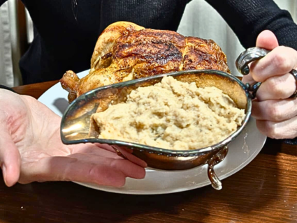 Though Helen Marsh wasn’t known for her cooking, her newspaper column Conversation Pieces often featured recipes passed along by local women whose cooking she admired. The bread sauce featured here originally came from Frances Falls and was shared in Helen’s column years ago.