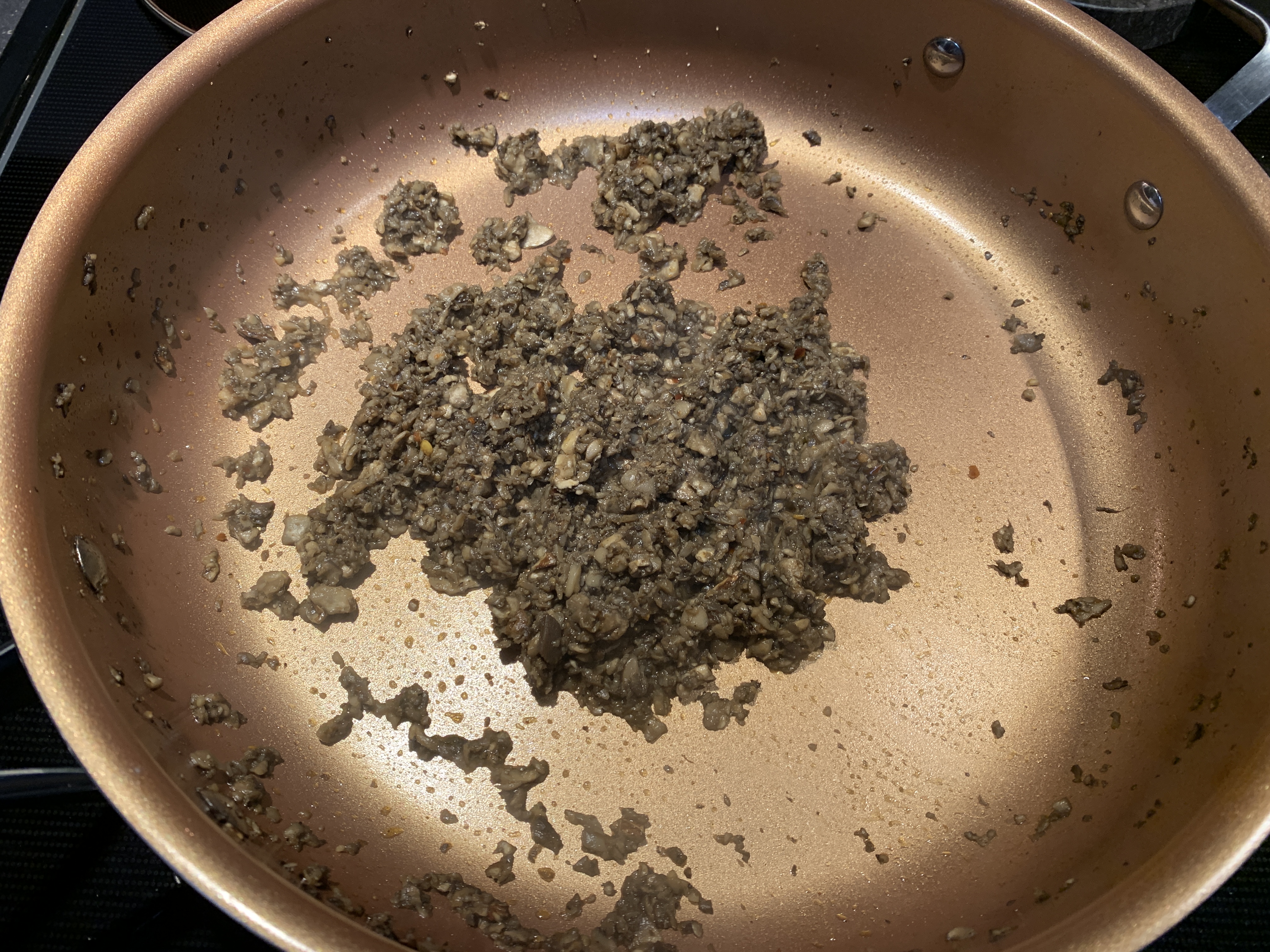 Vegan substitute uses 4 portobello mushrooms cleaned and chopped to resembled ground meat. Sauté in a pan with vegan butter and spices to match your dish. I used a poultry seasoning mix for Christmas and Steak spice when pairing with a beef dish. Sauté until moisture is all gone from the pan and mushrooms are cooked and tasty. Must taste as you go!