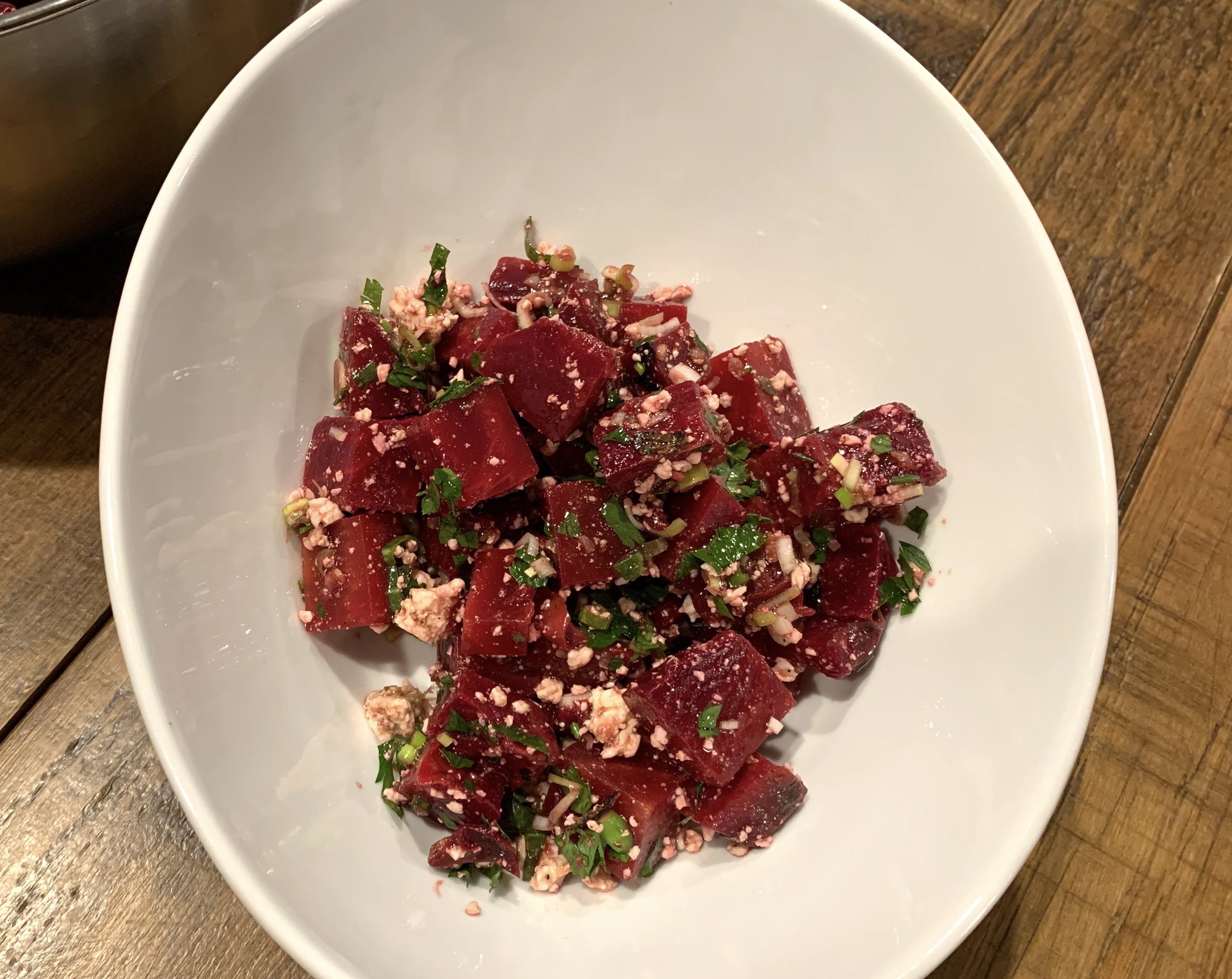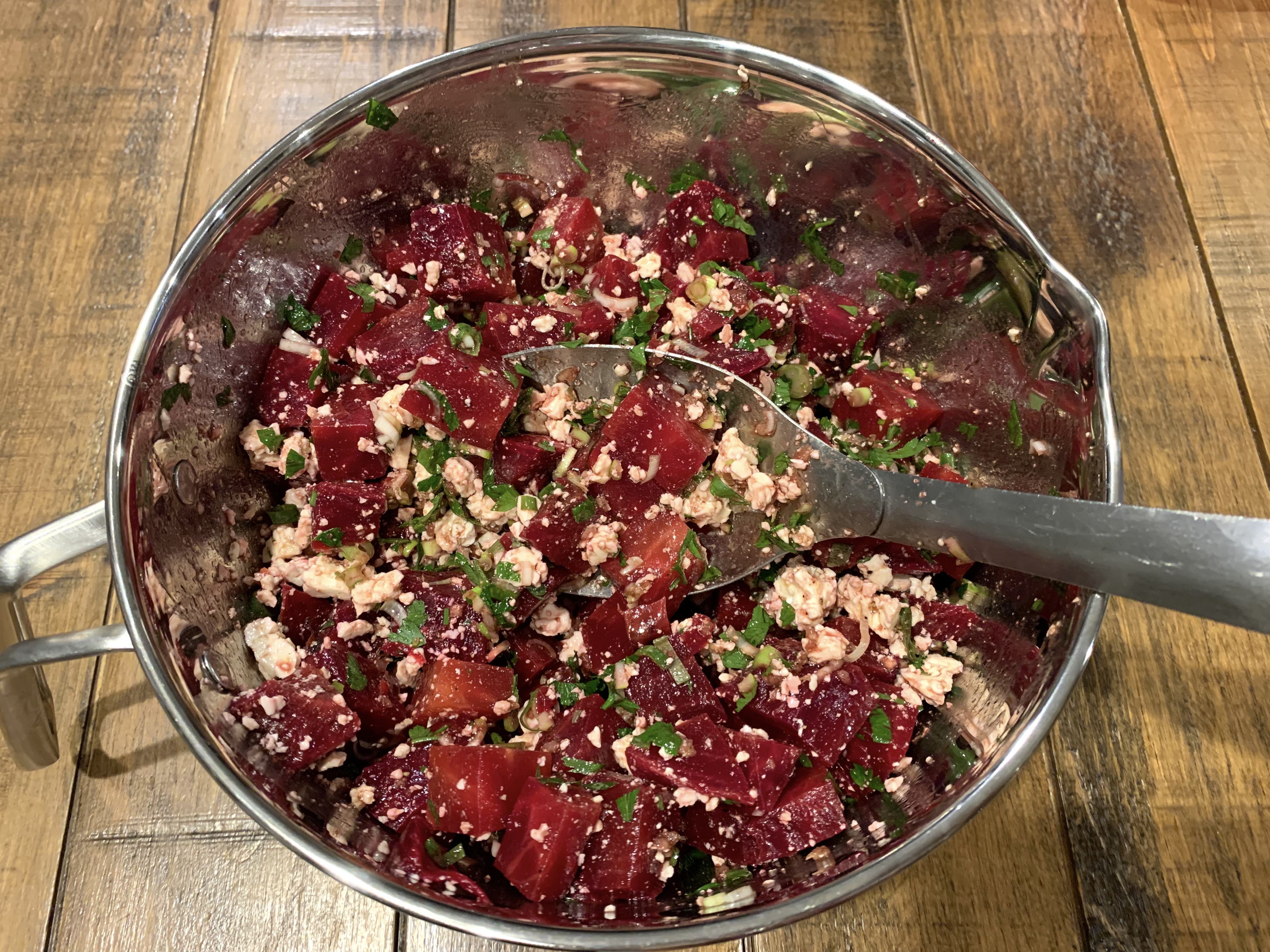 I first found this beet and feta salad when I was trying to make good use of the beets, green onions, and parsley growing in my garden, and I loved how fresh it tasted—especially when the beets were roasted in the oven. It was simple, a little extra work, but always worth it.