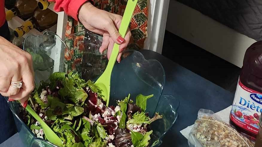 Carla Hope, who joined the ladies' dinner group alongside her best friend Kathy Laughland, brought a lot of joy and energy to Veronika’s colour-themed party. With her infectious laugh and vibrant personality, Carla made sure her contribution was just as lively. Assigned the colour red, she whipped up a delicious beet salad and paired it with refreshing cranberry juice.