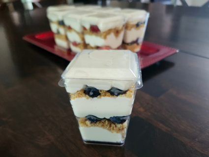 I love to make these individually in the containers in the photo (Amazon) for the Amherstburg Mission. To have the correct quantities; the crust quantity stays the same, but I double the cheesecake. For best results put the cheesecake in a piping bag and cut off the end (no tip required). Do a layer of cheesecake, then sprinkle a rounded teaspoons of crumbs mixture, layer of fruit, repeat.