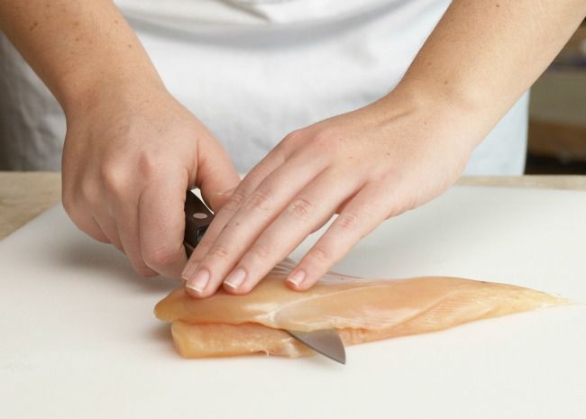 On a cutting board either pound the chicken thin with a meat mallet or cut them horizontally so they are half their normal thickness. Place them on a large dinner plate and sprinkle each side evenly with lemon pepper seasoning.