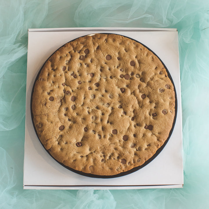 If you want to make one large cookie, spread the dough into a round pizza tin (with no holes) and bake 375℉ for 12 - 14 minutes.