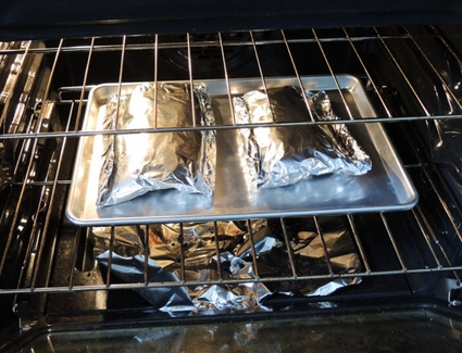 Take the ribs out of the oven and make a small slit in each of the packets and drain the liquid into a heat safe container. Ensure there is no juice on the cookie sheet as we will be using it again in the oven and want it to catch on fire. Open up the packets, return the ribs to the cookie sheet and put them under the broiler 3 - 5 minutes. Watch the ribs carefully to ensure they do not burn.